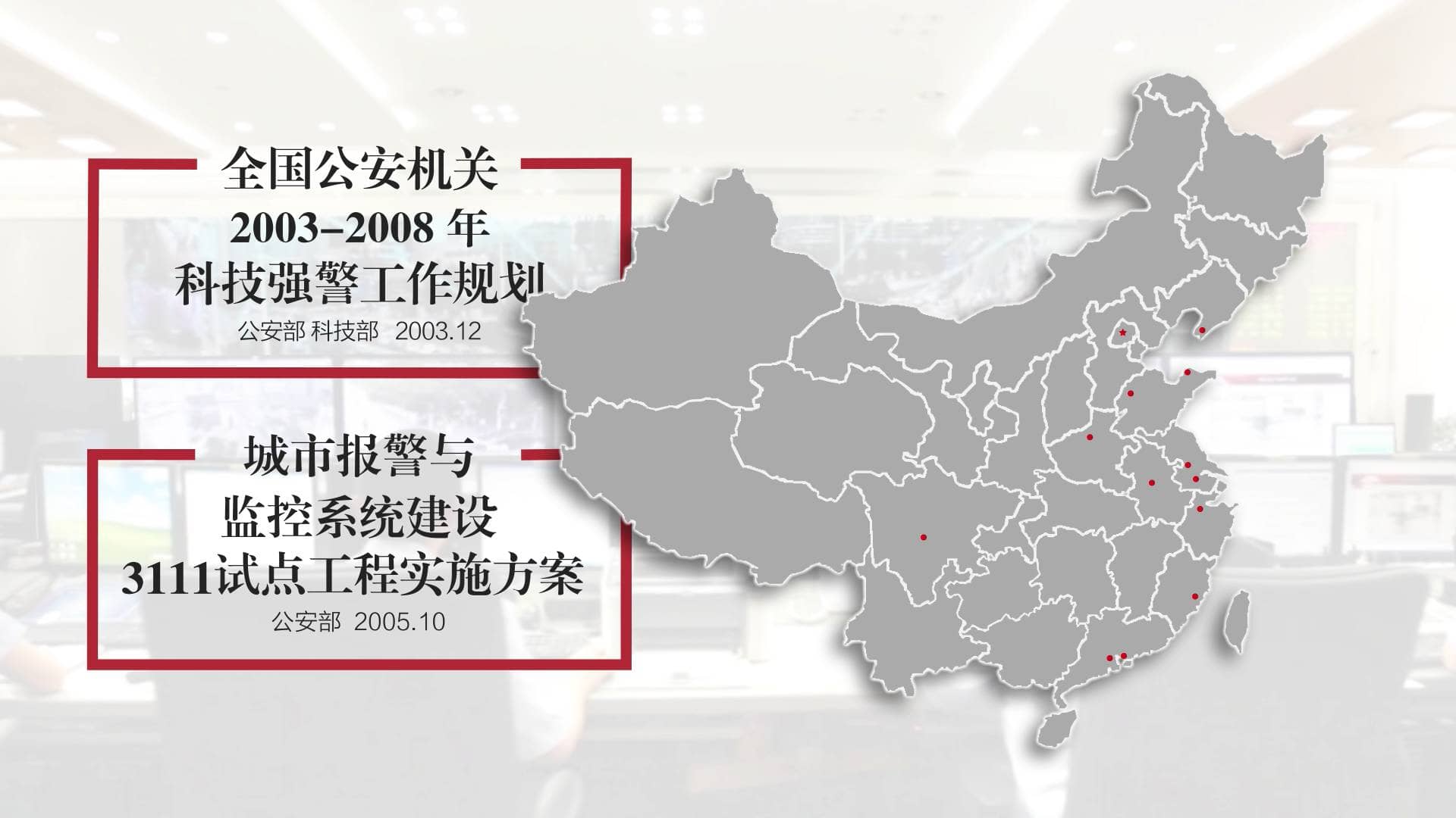 从 2009 年《湖北省社会治安视频监控系统共享平台建设指导意见》, 2010 年《青岛市市北区平安城市监控系统建设方案》 , 2012 年 《惠州市社会治安视频监控系统建设三年计划》几份文件中,我们可以窥见这一系统是如何运作的。